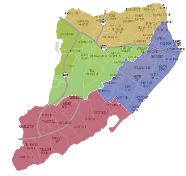 New Dorp Midland Beach Great Kills St. George Tottenville Port Richmond
